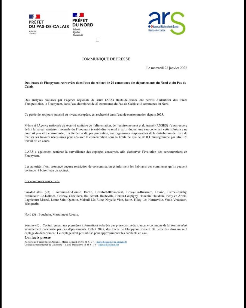 Voici le communiqué de l’ARS et du Préfet du Pas-de-Calais ⤵️
